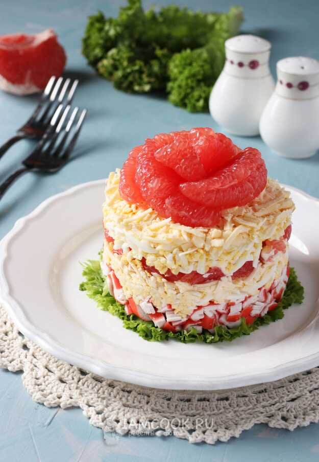 Необычный салат на праздничный стол с крабовыми палочками и грейпфрутом🍊