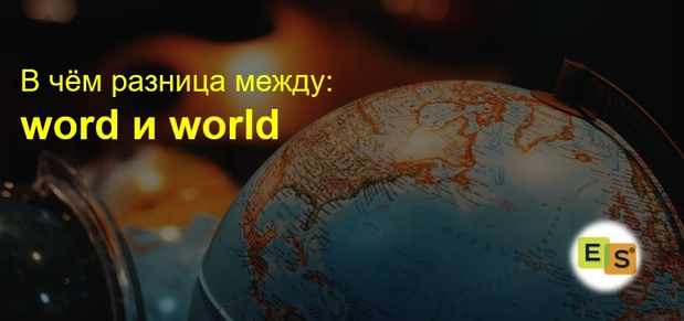 Сегодняшние слова - word и world. Они похожи в написании и несильно отличаются в произношении. Возможно, поэтому их часто путают. Но отличия есть, и это нельзя игнорировать, ведь слова по смыслу совершенно разные, и неправильное их употребление может вызвать недопонимание и замешательство. Посмотрим на них повнимательнее. WORD Произношение и перевод: [wɜːd] - [уод] - слово сегодня как раз тот случай, когда русская транскрипция ну уж очень отдалённо передаёт реальное звучание слова, поэтому, пожалуйста, не поленитесь и послушайте, как произносят слова word и world носители языка в словаре Значение слова: языковая единица, состоящая из букв и обладающая смыслом; может выражена письменно и устно Употребление: само слово word не представляет каких-либо трудностей в использовании, однако с ним существует множество выражений. Приведём несколько из них: Примеры: The longest English word consists of 1913 letters. - Самое длинное английское слово состоит из 1913 букв. What’s the English word fo