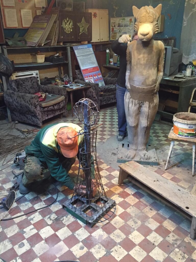 Несмотря на окончание летнего сезона, творческий коллектив Детского парка намерен и дальше продолжать трудиться над созданием новых скульптур. В творческой мастерской появляются новые сказочные персонажи. Сейчас это Красная Шапочка и Серый волк. — Мы практически закончили работу над волком. Осталось проработать детали и покрасить фигуру, — рассказывает автор скульптур Елена Малькова. — Примерно через неделю персонаж будет полностью готов. Хочу отметить, что рост Волка составляет 1, 75 см. Мне хотелось, чтобы рядом со скульптурой даже взрослый человек почувствовал себя ребенком. Также Елена Малькова отметила, что старается делать скульптуры разнообразными, поэтому некоторые из них совсем маленькие, а другие – огромные. Для Красной Шапочки уже сварен каркас, Елена Малькова приступила к черновой отделке фигуры. В течение зимы творческий коллектив планирует продолжить создание различных скульптур. Весной, когда установится теплая и сухая погода, они будут размещены на аллее в Детском парке