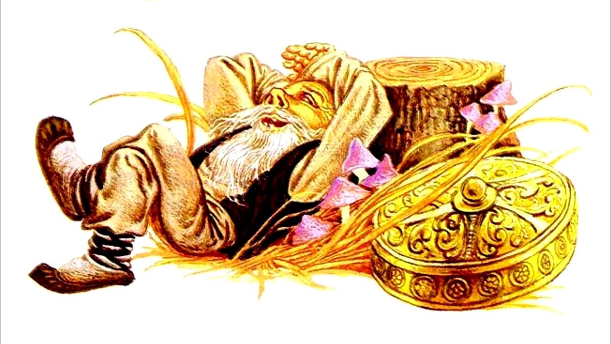 И только он так сказал — выскочил из-под пня маленький старичок с длинною бородой.