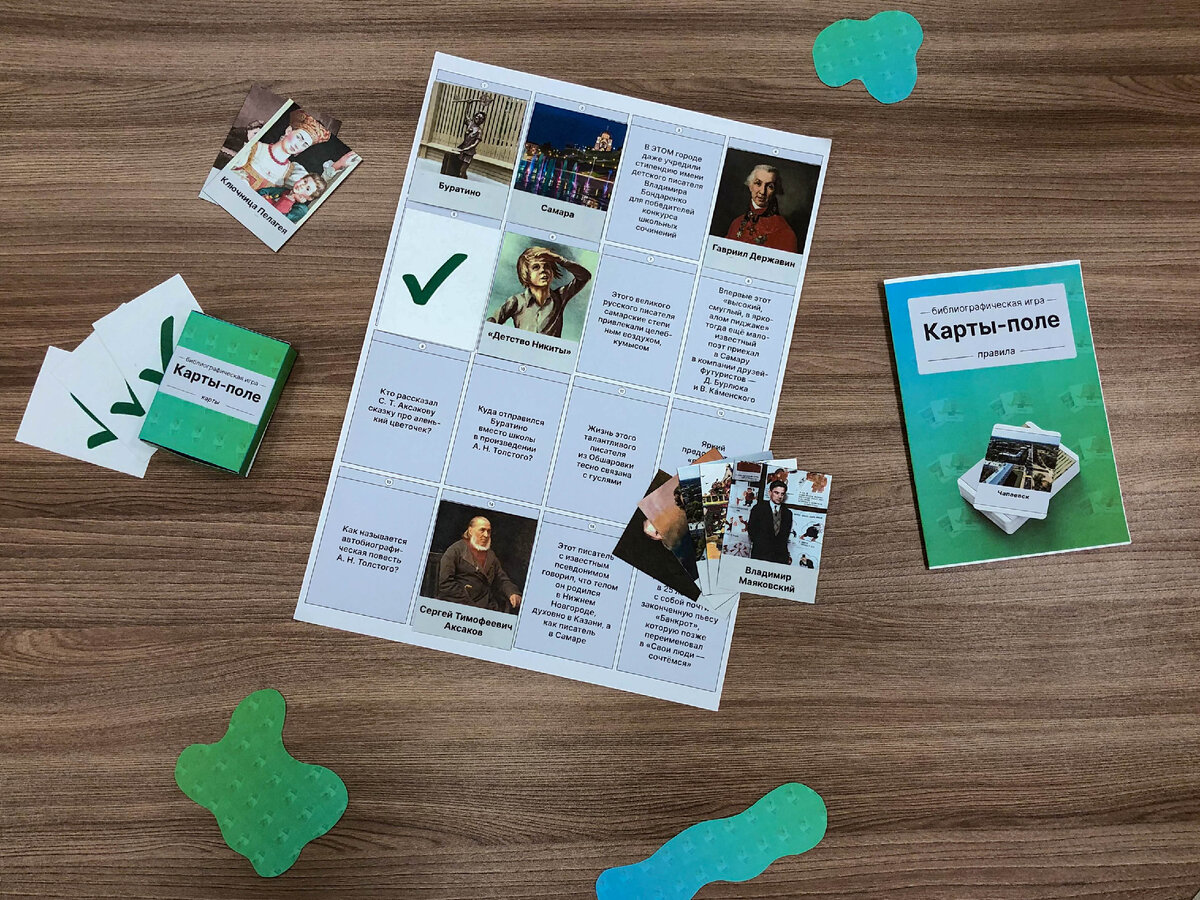 Всем привет, хочу поделиться настольной библиографической игрой «Карты-поле». Это полезная и познавательная игра для детей младшего и среднего школьного возраста, но взрослым тоже будет интересно (проверено на библиотекарях!). Тема данной игры — «Имена писателей на карте Самарской губернии». Она создавалась мной для конкурса, приуроченного к Году культурного наследия народов России. Но кроме оригинальной игры я приложу исходный проект в Figma, чтобы все желающие могли редактировать вопросы и иллюстрации, создавая много новых и интересных игр на базе этой. Как играть Необходимо разложить карты с ответами