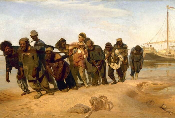 Эти образы несчастных оборванцев, зарабатывающих на жизнь непосильным трудом, знакомы всем по школьным учебникам. Бурлаки в XVI-XIX вв. были наемными рабочими, которые при помощи бечевы тянули речные суда против течения. Бурлаки объединялись в артели по 10-45 человек, были и женские артели.