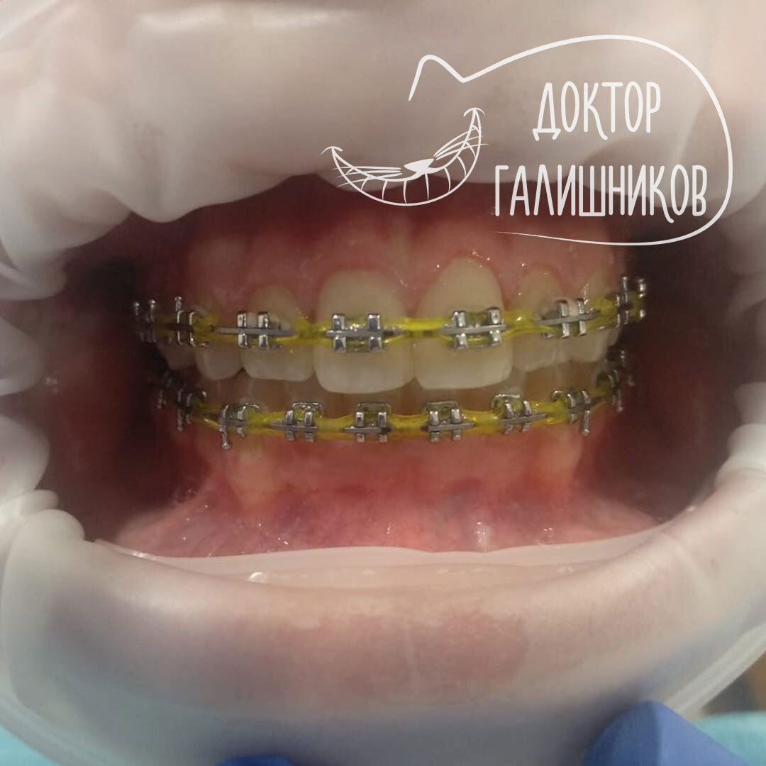 В большинстве случаев проблемы с прикусом – это врождённая особенность, которая может даже передаваться по наследству. Но есть и исключения – например, открытый прикус, который может появиться из-за того, что ребёнок постоянно сосёт палец или соску-пустышку, особенно, когда ему уже исполнилось полтора года. А также находится на грудном вскармливании после двух лет. В этом случае формируется вертикальная дизокклюзия – когда не смыкаются резцы и клыки, а иногда – моляры. Примерно с такой проблемой к нам и пришла пациентка – девочка-подросток. Мы провели ряд исследований, а затем установили брекеты. Дизокклюзию мы вылечили за 3,5 года. А теперь мы уже сняли брекеты и улыбка у пациентки практически идеальная. К сожалению, у нас не сохранилось фото, как было до. Поэтому покажу только как было с брекетами и что получилось в итоге. Пишите в комментариях, чтобы записаться на бесплатную консультацию к Ольге Сергеевне – нашему ортодонту. О возможных противопоказаниях проконсультируйтесь со специ