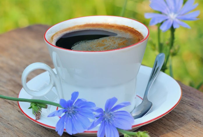 Цикорий – это травянистое растение. У цикория ярко-синие цветы, растение относится к семейству одуванчиков. Из измельченного и обжаренного корня цикория получается напиток, который по вкусу и цвету похож на кофе. Предположительно его использовали как альтернативу этому напитку еще в 1800-х, когда во Франции случился дефицит кофейного зерна. В кулинарии используют измельченные и обжаренные корни растения, из которых можно приготовить напиток. Он может стать альтернативой для тех, кому противопоказан кофе. Злоупотребление кофеином может вызвать бессонницу, тревогу, тошноту и другие побочные эффекты. Поскольку в корне цикория нет кофеина, напиток из него можно использовать как альтернативу. Кроме того, по вкусу и запаху он также напоминает кофе. Содержание этого вещества в одной чашке может варьироваться, но в среднем оно составляет примерно 95 мг. У напитка из цикория слегка древесный, ореховый аромат. Рецепты могут варьироваться, но обычно 2 чайные ложки молотого корня цикория раствор