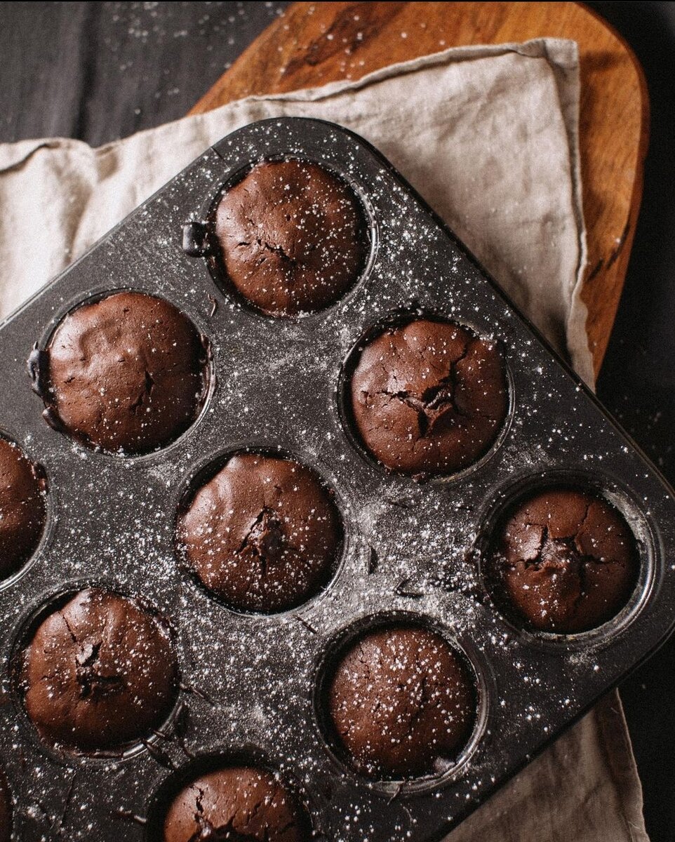 Духовку разогрейте до 220 градусов. На водяной бане или в микроволновке растопите шоколад и сливочное масло. Смешайте их вместе. В отдельно миске взбейте венчиком яйца с сахаром, пока смесь не побелеет и не станет пенистой. Добавьте эту смесь к остывшему шоколаду, перемешайте и затем добавьте просеянную муку. Формы смажьте сливочным маслом и присыпьте мукой. Выпекайте 5-7 минут в зависимости от размера форм. Затем дайте постоять пру минут и выньте готовый фондан из форм. Подавайте с мороженым. Приятного аппетита👍