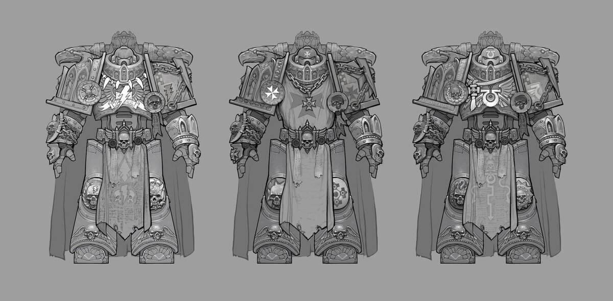Всем доброго времени суток! На днях, докрасив очередную миниатюру персонажа, сидел и размышлял, что же красить следующим. На глаза мне попался пакет с 5-кой литых intercessor'ов с пиломечами и пистолетами. Я подумал и решил, что неплохо будет сделать вторую пятерку парней, внешне отличающимися от первой пятерки, а также получить возможность брать новую пятерку в качестве отряда ветеранов. В виду моей симпатии к Имперским Кулакам и их наследникам я решил, что буду придерживаться стилистики Черных Храмовников и Хускарлов Имперских Кулаков времен Ереси. По общей задумке я решил дать парням табарды, аналогичные имеющимся у Черных Храмовников, добавить по возможности элементов стилистики рыцарства и псевдо-Средневековья. Кроме того, я решил заменить пиломечи на пилотопоры, т.к. когда-то в одной из книг по Ереси (вроде бы "Преторианец Дорна", если память не изменяет) прочитал, что отряд Имперских Кулаков сражался при абордаже именно пилотопорами. Для начала решил начать с тел. Предварительно