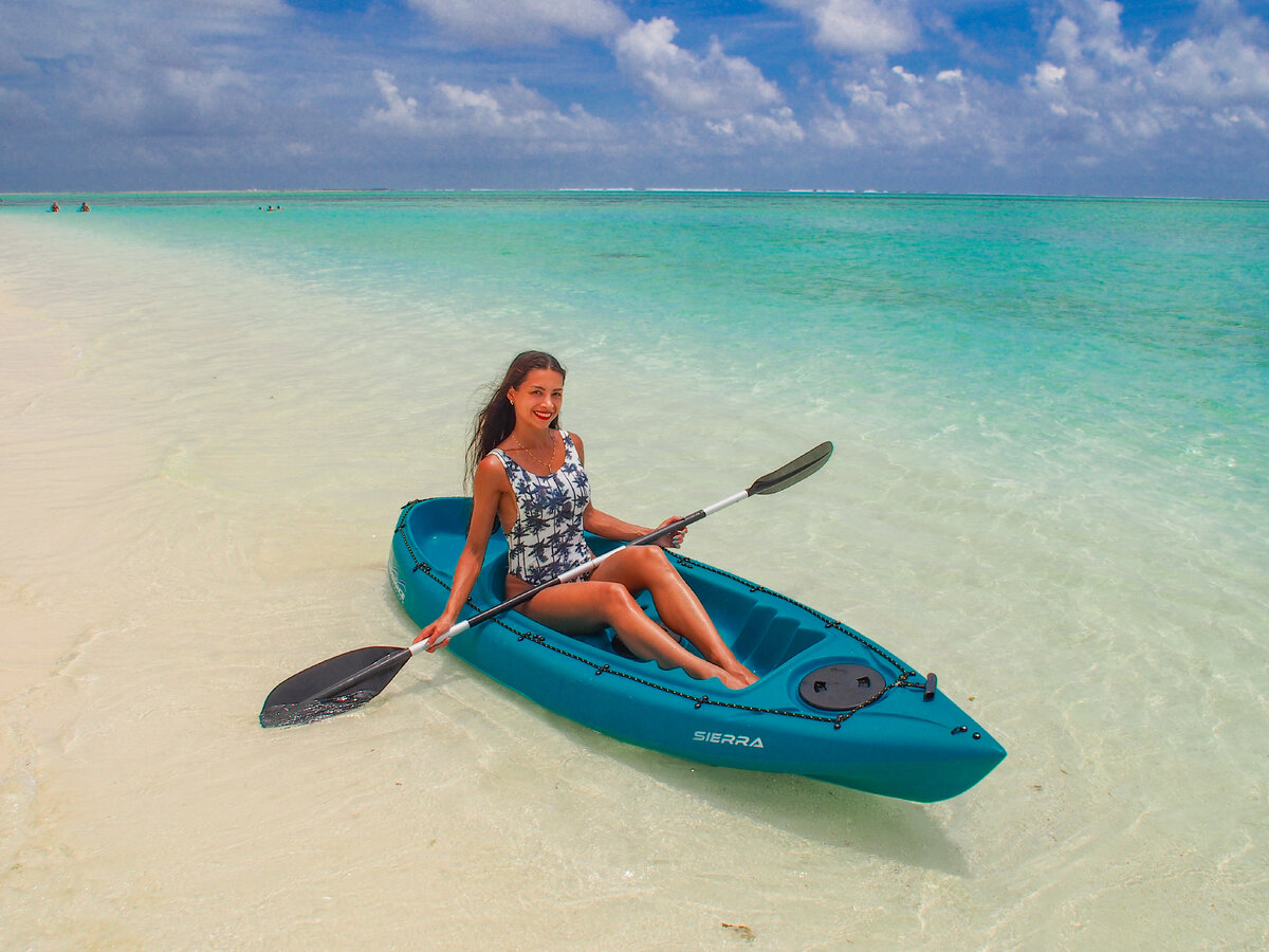 Одна из главных активностей на Мальдивах - это, конечно, водные развлечения и виды спорта. В этом плане острова-резорты, безусловно, сильно выигрывают у локальных островов. Здесь вам предложат развлечения на любой вкус и кошелёк. Так, например, в отеле Sun Island Resort & Spa можно покататься на каяке, сапе, парусной лодке, катамаране, водных лыжах, вейкборде, гидроцикле, заняться виндсерфингом, кайтсерфингом и многим, многим другим... Кстати, на каяке можно плавать совершенно бесплатно, только надо обязательно записаться заранее. Центр водных видов спорта здесь находится на одном из общих пляжей острова (том, который дальше от ресепшена). Если вы, как и мы, будете жить на другой стороне острова, то идти сюда пешком нужно будет минут 20, поэтому удобнее, конечно, передвигаться на велосипеде, а тем, кто как и я не умеет на нем кататься, можно доехать сюда на электрокаре, которые курсируют по острову в течение дня, ну или дойти пешком. Что же касается локального острова, я могу сделать в