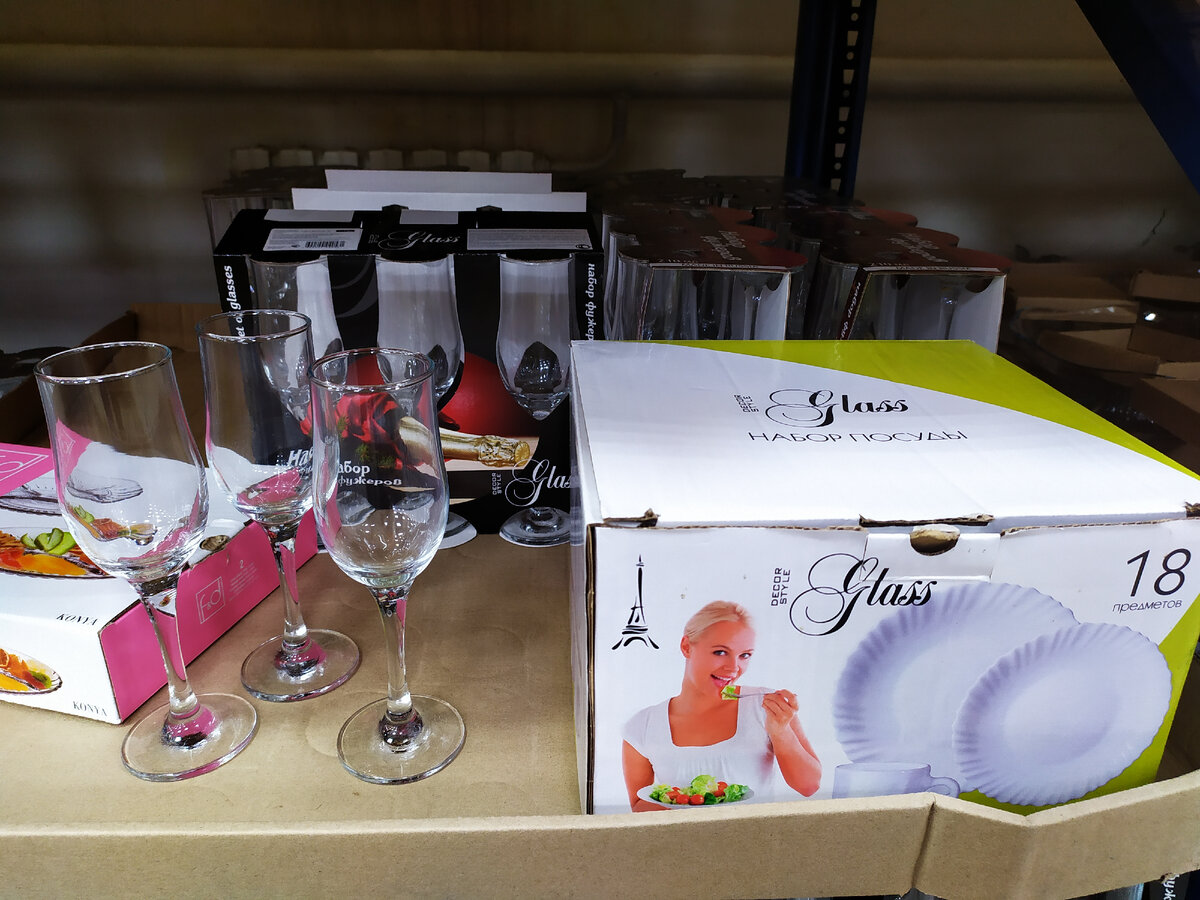 За последнее время посудный ряд в "Светофоре" весьма неплохо расширился и уже за 5 минут я не могу прицениться к предложенным тут товарам. В основном все изделия из стекла, кроме десертных тарелок, где на ценнике написано фарфор. И так, обзор из "Светофора" в городе Крымск. Набор бокалов для коньяка или бренди из 6 штук, объёмом 250 мл. Цена 322 рубля. Большой выбор фарфоровых десертных тарелок с рисунком разной формы, диаметром 20 см есть даже плоские. Цена 83 рубля. Глубокая фарфоровая тарелка с рисунком для первого блюда, диаметром 20 см. Цена 121 рубль. Столовый набор из тёмного стекла, в упаковке 30 предметов включая 6 бокалов для вина. Цена 2430 рублей. На 200 рублей подешевел вот этот столовый набор из опалового стекла. В комплекте 6 кружек по 220 мл, 6 десертных тарелок по 19 см и 6 тарелок по 23 см. Цена 1092 рубля. Набор фужеров для вина и шампанского из 6 штук, объёмом 210 мл. Цена 322 рубля. Стеклянный глубокий салатник объёмом 2 литра. Цена 114 рублей. Стеклянная овальная