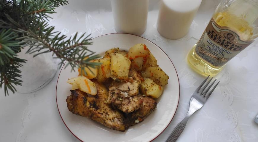 1 курица(любые части) - 500 кг 2 картофель - 5 шт. 3 морковь - 1 шт. 4 лук - 1 шт. 5 соль, перец по вкусу 6 оливковое масло - 2 ст.л. 7 чеснок - 3 зубчика