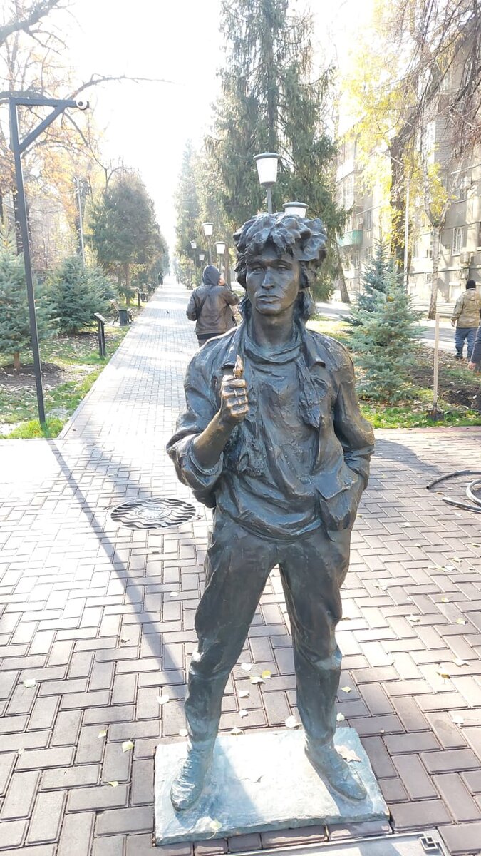 Бесспорно, Виктор Цой-человек легенда, лидер 80-ых и кумир многих поклонников его таланта, в разных городах России и ряде республик постсоветского пространства помнят и любят Виктора Цоя до сих пор. Дорогие подписчики и гости моего канала. Я уже рассказывала в своих предыдущих публикациях о Викторе Цое, Что вижу о том и пою. Арбат. Стена Виктора Цоя. Вы можете ознакомится с предыдущей публикацией пройдя по ссылке. Пример тому, установленный памятник известному рок музыканту, лидеру группы "Кино" Виктору Цою в Казахстане в городе Алма-Аты. Монумент из бронзы установлен в 2018 году, на улице улица Тулебаева ( “Тулебайке”) в день рождения певца - 21 июня. Автор памятника Питерский скульптор Матвей Макушкин . Герой фильма “Игла” – Моро Собственно, это не совсем памятник Виктору Цою, скорее это памятник Моро - персонажу, из фильма "Игла", которого очень талантливо сыграл Виктор Цой. Фильм "Игла" снимался в 1988 году на киностудии «Казахфильм». каз