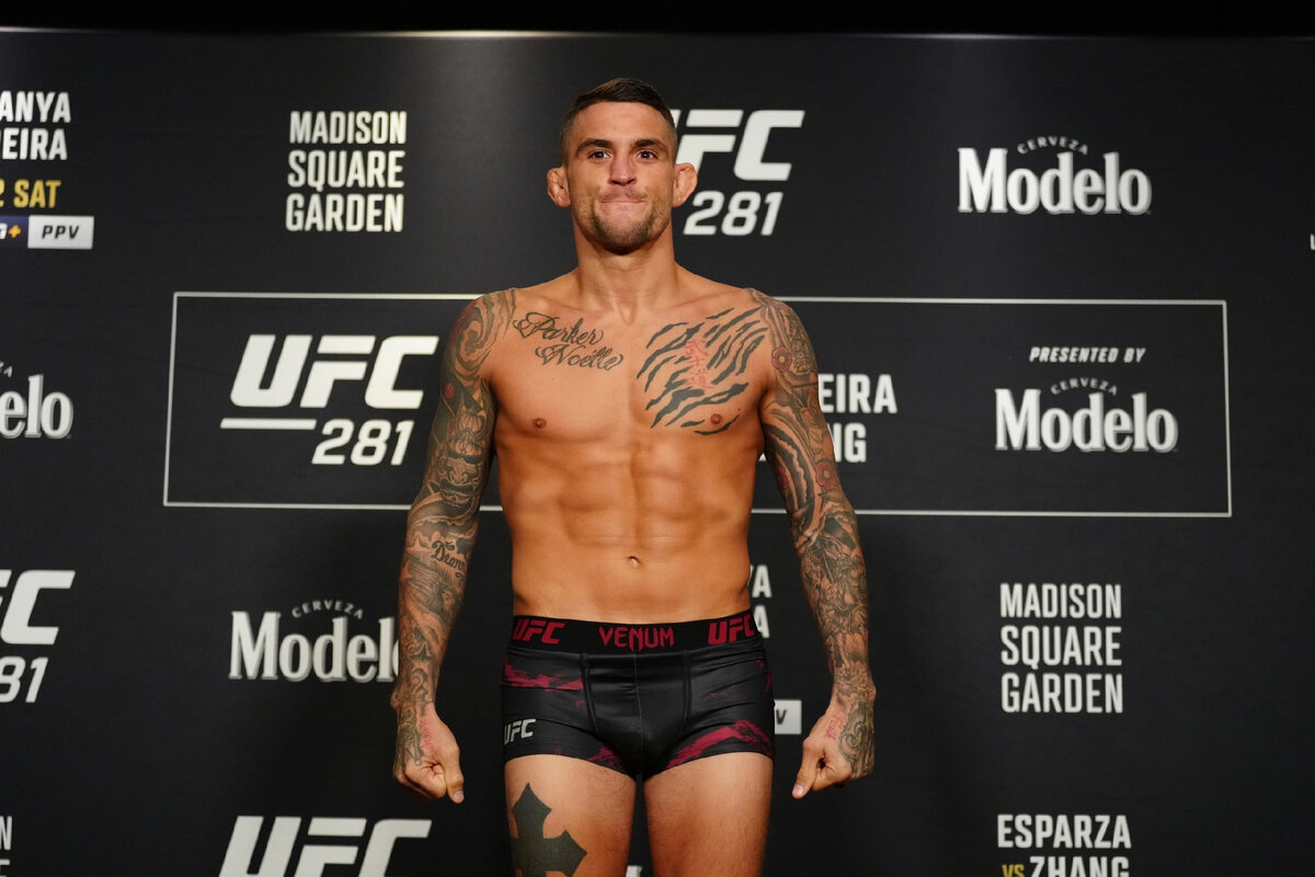 Бойцы прошли конферерцию и встретелись лицом к лицу на фейс ту фейс,а затем встали на весы, практически все бойцы сделали вес . Главный кард: Главный бой вечера, средний вес: Исраэль Адесанья (83,91 кг) vs Алекс Перейра (83,73 кг) Женский минимальный вес: Карла Эспарза (52,07 кг) vs Вейли Жанг (52,07 кг) Лёгкий вес: Дастин Порье (70,76 кг) vs Майкл Чендлер (70,66 кг) Легчайший вес: Фрэнки Эдгар (61,5 кг) vs Крис Гутиеррез (61,68 кг) Лёгкий вес: Дэн Хукер (70,66 кг) vs Клаудио Пуэллес (70,39 кг) Прелимы: Лёгкий вес: Брэд Ридделл (70,57 кг) vs Ренато Мойкано (70,66 кг) Полутяжёлый вес: Доминик Рейес (93,16 кг) vs Раян Спэнн (93,71 кг)* Женский наилегчайший вес: Эрин Бланчфилд (56,69 кг) vs Молли МакКэн (56,88 кг) Средний вес: Андрэ Петроски (84,27 кг) vs Веллингтон Турман (84 кг) Ранние прелимы: Лёгкий вес: Мэтт Фревола (70,21 кг) vs Оттман Азайтар (70,57 кг) Женский минимальный вес: Каролина Ковалькевич (52,43 кг) vs Сильвана Гомез Хуарез (52,43 кг)