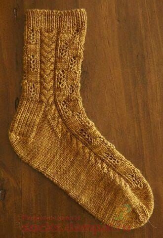 Ажурные носки от дизайнера Alexa Ludeman связаны рисунком в шахматном порядке. По бокам носочков проходит двойная коса. Размер: S (M, L) Окружность манжеты 19 (20.5, 21.5) см; Длина стопы 24 (25.5, 28) см. Рекомендуемая пряжа: Madelinetosh Pashmina (75% мериносовая шерсть, 15% шелк, 10% кашемир; 330 м / 100 грамм в мотке) – 1 моток. Инструменты: Обоюдоострые спицы № 2.75 и № 3.25, маркеры петель, дополнительная спица, гобеленовая игла. Плотность вязания: 28 петель и 36 рядов лицевой глади, выполненной спицами № 3.25, составляют 10 см. Манжета: Спицами № 2.75 набрать 56 (60, 64) петель. Соединить наборный ряд в кольцо, отметив маркером начало кругового ряда. Связать 4 см резинкой 1х1 (1 лицевая петля, 1 изнаночная петля). Поменять спицы на № 3.25. Далее вязать рисунком по схеме, повторив в одном ряду 2 раза раппорт из 28 (30, 32) петель. Повторять ряды 1-16 до тех пор, пока высота вязания не достигнет 15 см от наборного ряда. Закончить 8-м или 16-м рядом схемы. Стенка пятки: Стенка пятк