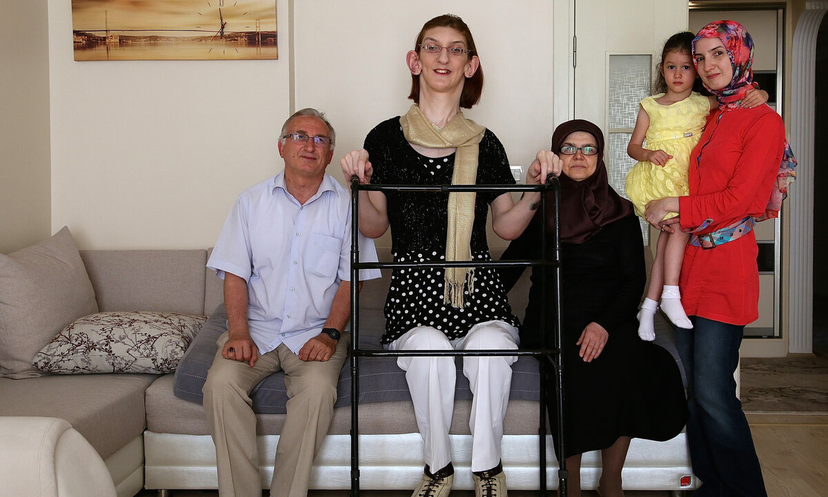 Спойлер: для нее буквально нет никаких преград. Так уж вышло, что Румейса Гельги из турецкого города Сафранболу прославилась на весь мир не благодаря своим заслугам, достижениям в какой-то области, а благодаря… своему росту. Он достиг отметки в 215 см, при том, что самой девушке на данный момент всего 25 лет. Все дело в том, что высокий рост Румейсы обусловлен синдромом Уивера (первый зафиксированный случай в Турции на момент ее рождения) — крайне редким генетическим заболеванием, характеризующимся быстрым избыточным ростом на всем протяжении периода роста, сочетающимся с аномалиями развития скелета и внутренних органов. Впервые девушка попала в Книгу рекордов Гиннесса, когда ей было всего 18 лет (ее рост уже на тот момент составлял 213 см). В 2014 году Румейса была названа самым высоким подростком в мире. В октябре 2021 года она стала самой высокой в мире ныне живущей женщиной и на данный момент все еще удерживает это звание (читайте также: Миддлтон — королева, Маркл — домохозяйка, Ка