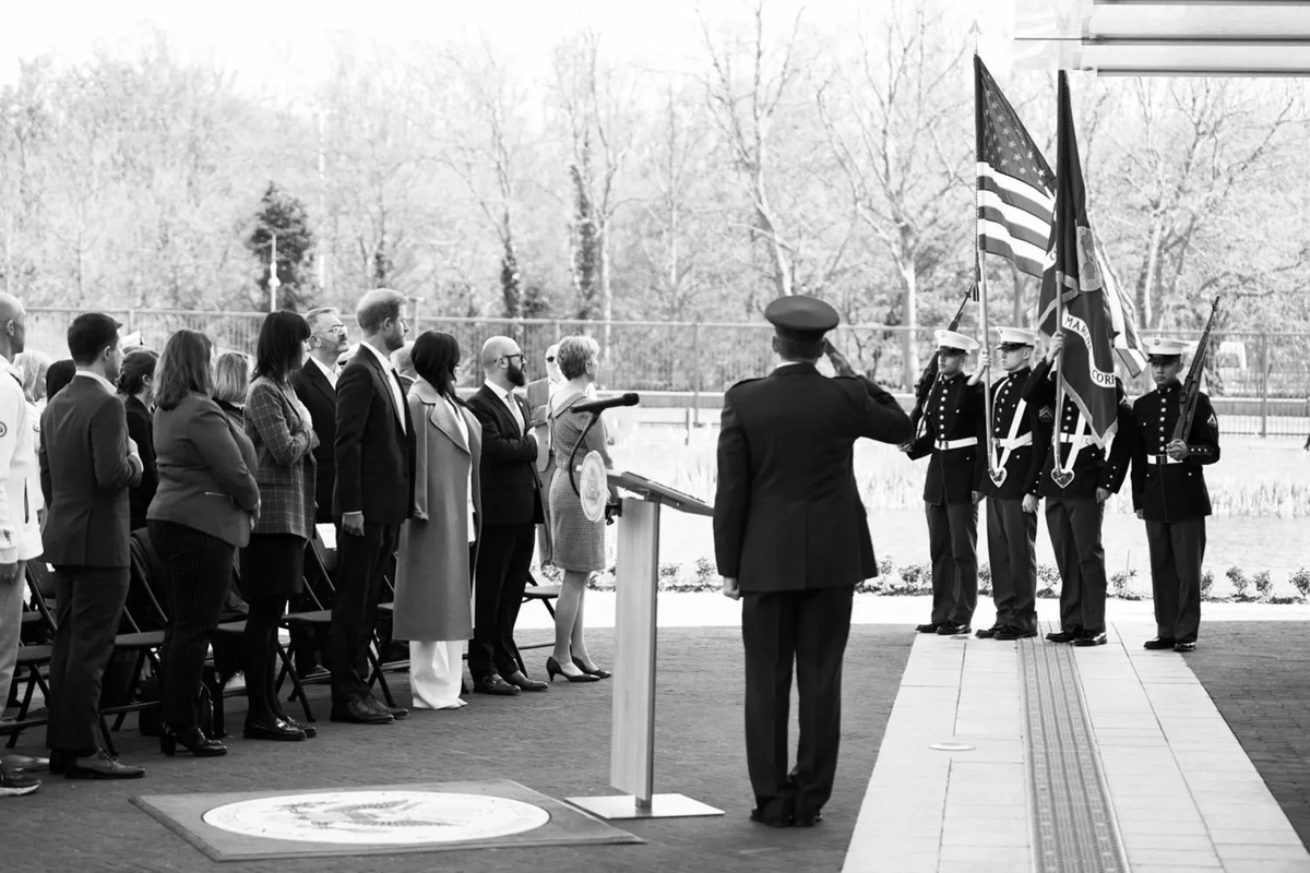 На своем веб-сайте Фонда Арчивелл Меган Маркл и принц Гарри поделились фотографией, которая, по их мнению, должна чествовать вoeннoслужащих в День памяти и День вeтeранов. На черно-белом снимке пара стоит перед воeннослужащими, что интересно - с американским флагом. "В этот день ветeранов и День памяти мы чествуем воeннослужащих по всему миру", - написали они. "Эти храбрые мужчины и женщины, а также их семьи пошли на огромные жертвы и воплощают долг и служение", - гласит надпись. Всё бы ничего, но интернет-пользователи обнаружили, что это фото с мероприятия открытия Игр Непокорённых в Гааге. Меган тогда передала пальто женщине с младенцем, чтобы тот не замерз. В прошлом году в этот день Гарри и Меган посетили воeнную бaзу в Нью-Джерси, чтобы отметить День ветерaнов. А потом герцог и герцогиня Сассекские чествовали всех на гламурном гала-концерте.