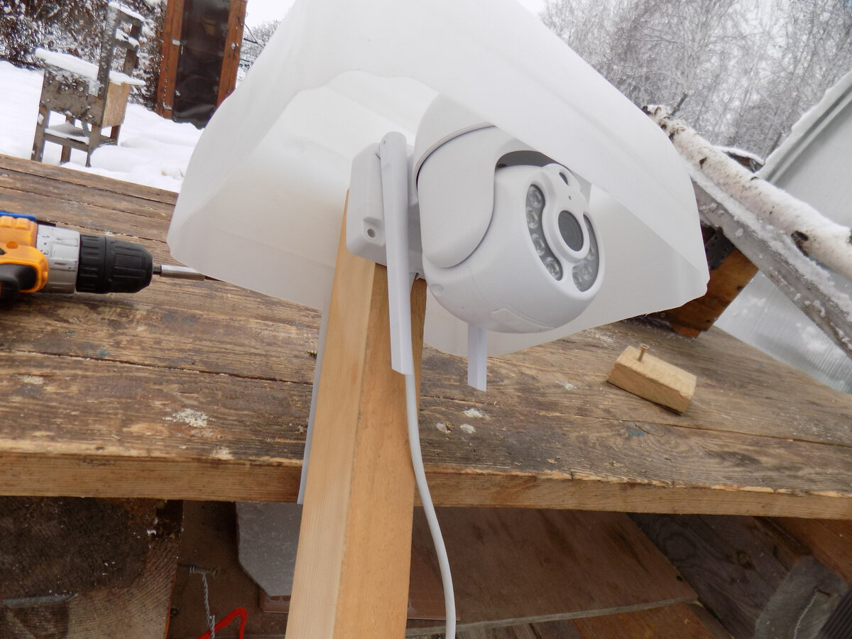Как показала практика, камеры лучше все таки защищать от осадков. Пока есть время сколхозил из 10 литровой канистры вот такой колпак. Все выполнено, как обычно, "без затей". Полная подборка по видеонаблюдению тут.
