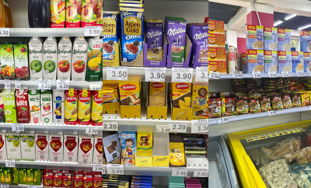 Для меня стало это полнейшим шоком, когда в супермаркетах Грузии я увидел знакомые упаковки продуктов из России. Появилось ощущение что я и не уезжал из России Упаковки сока с новой "экономной" упаковкой, шоколадки, каши, ролтон и другие знакомые продукты Цены на них, конечно же, чуть выше чем на продукты местного производства. Но зато знакомое, сразу понимаешь какой ждать вкус. Например сок добрый 4,2 лари (92 руб), а местный стоит 3 лари (66 руб). Но и вкус у Доброго, как и цена, на порядок выше. Вот с мясными продуктами тут всё "очень не очень". И вот русских продуктов в этом сегменте очень не хватает. Так что никакой гастрономической скуки по России тут не получится. Всегда можно купить что-то "знакомое". Да и кафе с русский/белорусской/украинской едой тут тоже есть. Борщи, дранники, пельмешки, оливье (на курице) отлично составляют разнообразие в бурном потоке хинкалек, хачапури, шоти (местный хлеб) и повсеместном запахе кинзы.