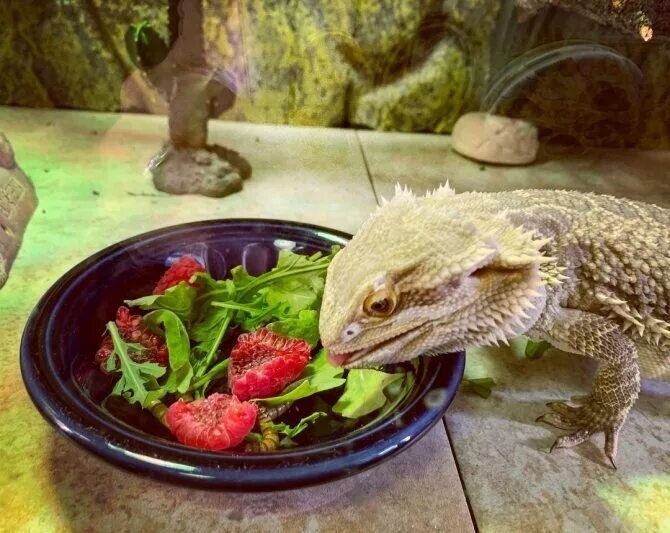Приветствую вас юные терариумисты. Сегодня поговорим о районе бородатых агам. Рацион состоит из 2 частей, насекомые, овощи и фрукты. Начнем с насекомых а именно: домовой сверчок, мучной червь, мраморные и туркменские тараканы, гусеница бражник. Звучит устрощаюше но в замороженном виде вполне безобидно. Есть 3 вида: Живые. Очень хороший вариант. Но нужно понимать что за ними тоже нужно убирать, кормить и мыть контейнеры. Но есть и + так как насекомые быстро размножаются их можно пробовать по штучно. Консервированные. Они продаются в интернет магазинах в банках. Скажу что это не самый лучший вариант. В них очень мало витаминов, да и агамы их не очень любят. Их можно использовать только в случае транспортировки рептилии, когда живых и заморозку взять нельзя. Заморозка. Этот вариант подойдёт для тех кто корм питомца бриться больше чем самого питомца. Ее удобно хранить и многи агамы ее любят. Фрукты и овощи. Фрукты и овощи обязательны в рационе бородатых агам. Агаму не пьют воды они получа