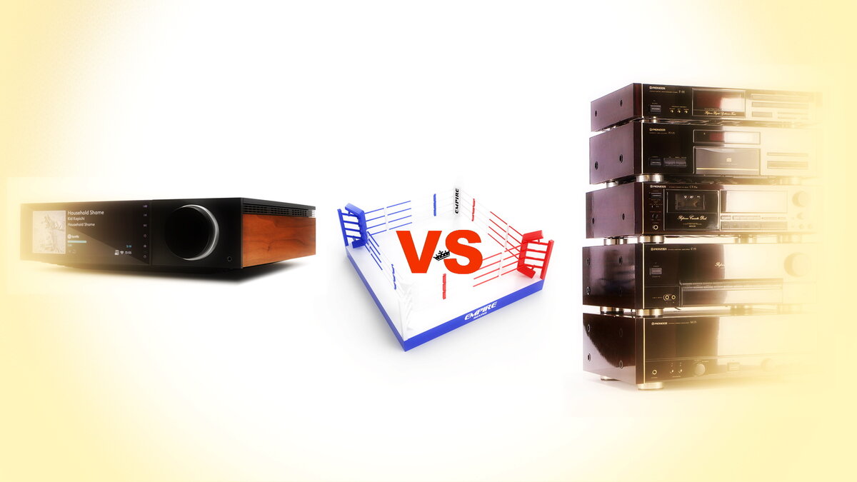 Я бы не стал поднимать такую тему если бы сам не погружался в неё неоднократно на протяжении тех четырёх с половиной десятилетий, составляющих мой трудовой "стаж" на ниве аудиоиндустрии. Иногда такие метания случались под влиянием жизненных обстоятельств (к примеру о какой блочной стереосистеме может идти речь когда кочуешь с одной съёмной квартиры на другую), но бывало и так, что всё это нагромождение компонентов и хитросплетенье проводов реально надоедало и хотелось сделать паузу, всё переосмыслить и начать "с чистого листа". Но поскольку совсем без музыки я своё существование не представлял, то какой-то альтернативный источник звука в этом промежутке времени у меня всегда был. Или кассетная магнитола или она же, но с CD- приводом, либо компактный музыкальный центр. Но, периодически избавляясь от аппаратуры, я старался не трогать фонотеку. Во всяком случае ту её часть, которую составляют виниловые пластинки и цифровые диски в форматах Audio CD, Blu-Ray, SACD, DVD-audio/video и т. п. А вот с аналоговыми магнитофонными записями на катушках и кассетах я в итоге распрощался. С катушками полностью, а кассет 3-4 десятка осталось, но постоянно слушать их не на чем. Лишь иногда, когда в моих руках оказывается какая-нибудь кассетная дека, что-то переслушиваю. Но это случается редко. Впрочем сей факт прямого отношения к теме не имеет.