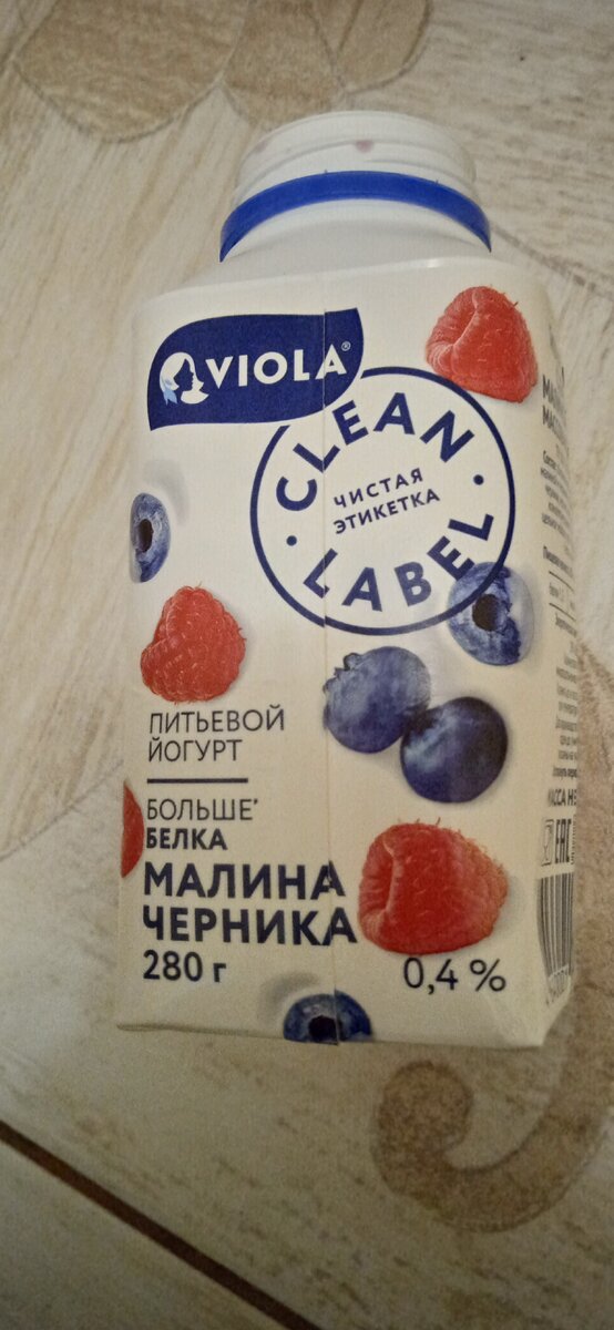 Компания Виола (Viola), она же ООО Галактика придумали довольно таки удачное сочетания вкусы (йогурт, черника и малина) и сто процентов без проигрышного так как у всех в фаворитах как правило именно черника и малина, ну ещё клубника. Так выглядит упаковка с этим йогуртом. Жирность его относительно небольшая 0,4%, но для кого то это на оборот является плюсом, в особенность для тех кто следит за своим весом и фигурой. По составу у данного йогурта всё хорошо, что можно видеть на фотографии выше. Да и по вкусу йогурт отличный.