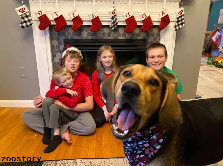 Каждый год семья делала рождественские открытки для друзей и родственников с совместной фотографией. Все изменилось, когда к ним присоединилась Пенни, собака, взятая из приюта. С момента его появления сделать идеальную фотографию стало невозможным делом. Семья Дини Гринштейн решила взять Пенни в апреле прошлого года. Собака была одним из одиннадцати щенков, брошенных под мусорный бак. Когда женщина, ее муж и пятеро детей пришли в приют, они сразу влюбились в застенчивую дворнягу. Однако оказалось, что характер пса был совсем иным. Только после того, как Пенни переступила порог своего нового дома, оказалось, что она очень энергичная, веселая и дружелюбная собака. Новая семья собаки была впечатлена тем, как быстро она оправилась от того, через что ей пришлось пройти. Все были в восторге от того, как щенок раскрылся. Все шло отлично, до декабря и того момента, когда домочадцы должны были позировать для фото. Изначально Дина планировала поставить детей и собаку в ряд перед камином. Однако