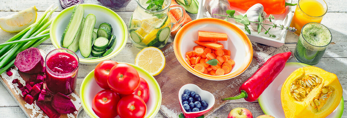 Список полезных продуктов достаточно широкий и включает: артишоки, свёклу, брокколи, все виды капусты, морковь, сельдерей, огурцы, помидоры, баклажаны, листовую зелень, грибы, лук, чеснок, перец, картофель, сладкий картофель, яблоки, абрикосы, вишню, черешню, цитрусовые, инжир, виноград, дыню, арбуз, персики, груши, гранаты, орехи.