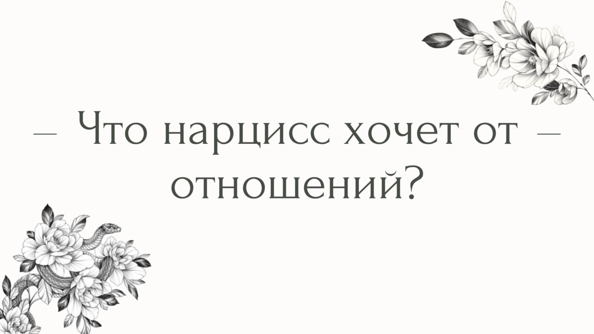 Нарцисс борется с обязательствами и эмоциональной близостью, которая связана с отношениями, потому что боится мыслей, чувств, эмоций и потребностей, которые необходимы для того, чтобы по-настоящему быть эмоционально связанными с кем-то еще. Этот страх также делает его неспособными защищать мысли, чувства, эмоции и потребности близкого человека, что является фундаментальным требованием для любых здоровых отношений. Итак, чего же хочет нарцисс в отношениях, если он презирает все, что они собой представляют?