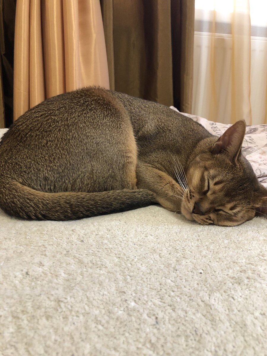 Абиссинская кошка, что о ней сказать ? Начнем с того что это одна из самых популярных пород кошек в Европе на протяжении уже сотни лет. Питомцы этой породы отличаются высоким уровнем интеллекта, глубокой привязанностью к своему хозяину и своеобразным характером. Внешний вид Отличительной чертой породы является красивый "Дикий окрас" Моя крестная всегда говорила: "Посмотри, посмотри на каждом волоске три цвета , на каждом!" Такой окрас еще иногда называют "Тикинг". Этот окрас по истине уникален , на одном волоске можно различить 3-4 разных цвета . Подобный окрас очень красиво переливается на свету и при разном освещении меняет свою глубину и тон. Интересно то , что такой необычный окрас кот приобретает только через пол года жизни , при рождении шерсть особо не отличается от других пород кошек. характерные черты внешности: У абиссинца довольно мускулистое тело , но благодаря небольшой длине шерсти кошка выглядит грациозно. Какие бывают окрасы ? Как я уже говорила, котята абиссин