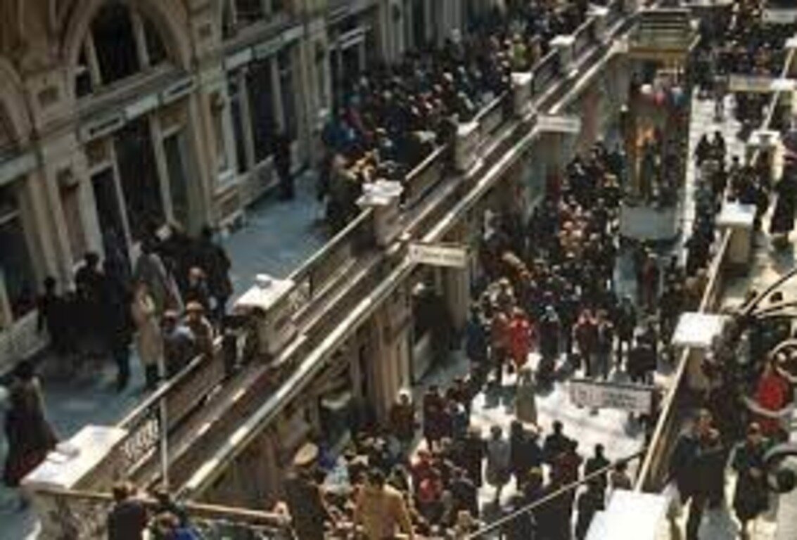 После учебного дня заехал в ГУМ. Ничего конкретного мне не надо, цель посещения – «поводить жалом» по полкам. Гуляю по галереям второго этажа. На мне расстегнутая синяя демисезонная летная куртка, под ней видна форма. На голове меховая шапка из кролика, по тогдашней моде. В одном из отделов сталкиваюсь с коллегой. Каракулевая шапка с «крабом», форменное пальто с погонами 10 или 11 категории, далеко не последний человек в своем отряде. Явно не москвич, явно торопится сделать покупки. В руках свертки и пакеты. Улыбнулись друг другу (мы же из одного курятника) и разошлись. В течение часа встретились еще несколько раз. Я просто гуляю, а коллега спешит, торопится с закупками. И внешний вид его постепенно меняется. Сталкиваемся в очередной раз. Шапка на затылке, пальто нараспашку, лицо красное, взгляд затравленный. Руки максимально заняты. Кидается ко мне, как к родному: «Парень, где тут вниз спуститься?!».