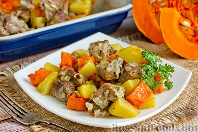 Жаркое со свининой, картофелем и тыквой. Ленивая баница из лаваша с тыквой. Чечевица с курицей и тыквой. Котлеты из тыквы с морковью. Кукурузно-тыквенный суп-пюре. Болгарская баница готовится из слоёв тонкого теста с начинкой, обычно с творогом или брынзой, но иногда и с тыквой. В ленивой банице из лаваша с тыквой тонкий лаваш заменяет тесто, а для начинки тыква натирается на тёрке. Чтобы пирог хорошо держал форму, всё заливается сметанно-яичной заливкой. Очень просто, а получается даже не пирог, а десерт какой-то), настолько он сочный и нежный. Чечевица с курицей и тыквой готовится на сковороде. Красная чечевица хорошо разваривается и удачно объединяет овощи и куриное филе в целостное блюдо. За счёт сочетания растительного и животного белка блюдо получается особенно питательным, а благодаря цвету продуктов смотрится ярко и аппетитно. Котлеты из тыквы с морковью и зеленью – отличная идея для экономии бюджета. Овощи тушатся на сковороде, затем перемешиваются с манной крупой и крахмалом