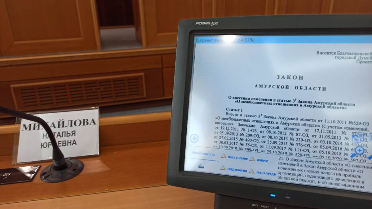 Немаловажным вопросом очередного заседания Заксобрания стал проект закона Амурской области «О межбюджетных отношениях в Амурской области». Инициатором данного законопроекта выступила Благовещенская городская Дума, которая предложила оставлять в бюджетах городских округов не 15, а 30 % налога, взимаемого в связи с применением упрощённой системы налогообложения. «Фракция ЛДПР поддерживает данный законопроект, несмотря на отрицательные заключения Контрольно-счетной палаты и государственного правового управления. У нас получается сейчас, что обязанности у муниципалитетов есть, а денег на их исполнение нет. Более того, я бы рассмотрела возможность увеличения даже не до 30%, а до 50%», - выступила Наталья Михайлова. В марте 2021 года с подобным законопроектом о межбюджетных отношениях выступала фракция ЛДПР в Законодательном Собрании Амурской области VII созыва. Инициативой депутатов от ЛДПР было предложено оставлять 63% от налоговых сборов самозанятых в бюджетах городов и населённых пунктов