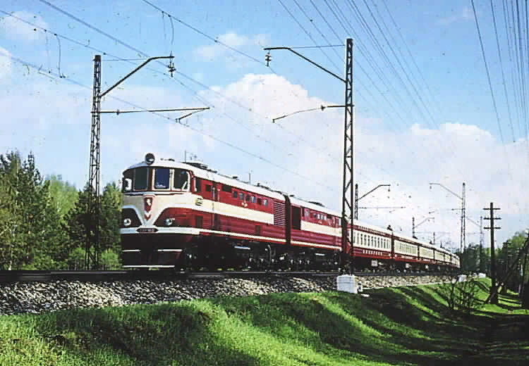 См: Прошлая подобная статья В 1955 году было принято решение о проектировании пассажирского тепловоза на базе грузового ТЭ3. В проект ТЭ3 был внесён ряд изменений и в конце 1956 года Харьковский завод транспортного машиностроения изготовил первый двухсекционный тепловоз серии — ТЭ7-001. От ТЭ3 тепловоз отличался передаточным числом тягового редуктора (66:26 вместо 75:17), а от первых серий — и конструкцией кабины машиниста. Кабина стала более высокой, светлой и менее звукопроницаемой. Впоследствии она стала использоваться на всех выпускаемых ТЭ3. Изменение передаточного числа позволило увеличить скорость длительного режима с 20 до 25 км/ч при одновременном уменьшении силы тяги. Изначально проектная скорость была определена на уровне 140 км/ч, однако по результатам эксплуатации с целью ограничения воздействия на путь ограничена 100 км/ч. По результатам тягово-эксплуатационных испытаний на линии Москва — Ленинград в 1957 году в конструкцию был внесён ряд дополнительных изменений, связан