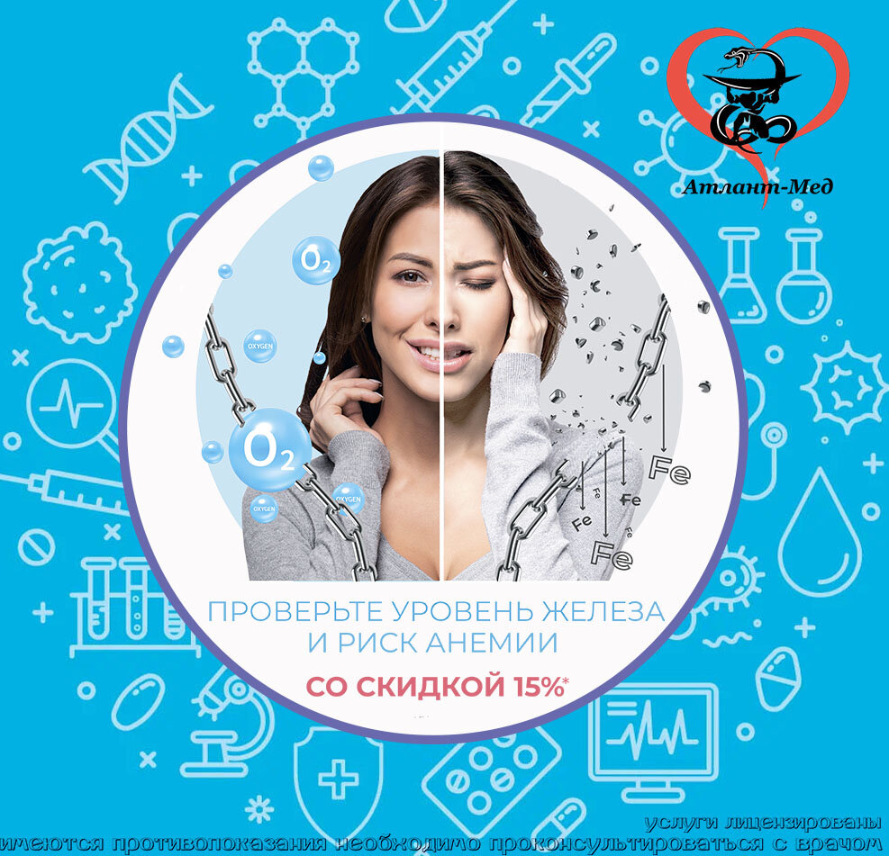 Железный аргумент, чтобы проверить риск анемии в ноябре! Скидка 15% на комплекс: АКЦИЯ! ПРОФИЛЬ «Железный аргумент», код:99-00-034 В состав данного профиля входят следующие исследования: Пройдите комплексную диагностику и узнайте, нужно ли: Диагностику рекомендуется проходить ежегодно даже при отсутствии симптомов анемии, особенно это касается людей из групп риска (дети до 5 лет, подростки, женщины в период беременности и лактации, доноры, люди старше 60 лет). Также важно проверить организм после COVID-19 – анемия часто встречается в пациентов, перенесших ковид. *Акция проводится с 1 по 30 ноября