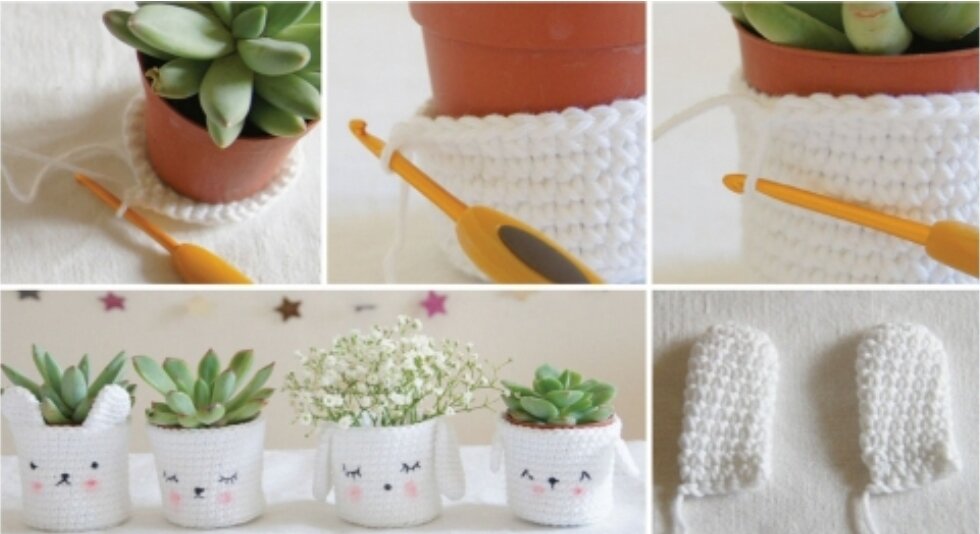 Вязаные горшки для цветов🪴Что связать из остатков ниток 🧺 +25фотоидей😳