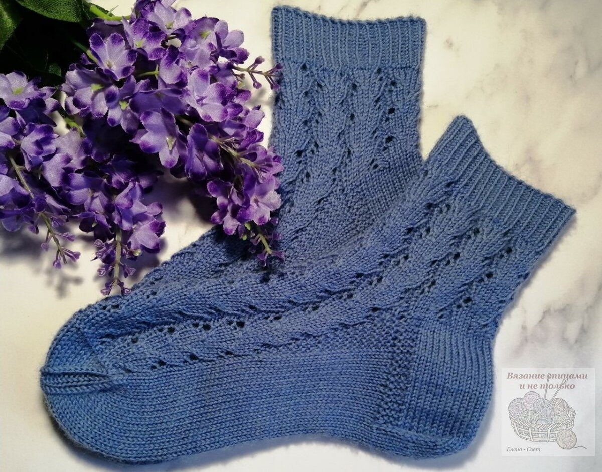 Добрый день, дорогие друзья! Еще одну модель женских носочков предлагаю вам связать вместе со мной. Нежные, в меру ажурные и тепленькие носочки будут прекрасным подарком к любому празднику. Пряжа: Alize Superwash Artisan Метраж: 420 м на 100 г Состав: 75% шерсть, 25% полиамид Цвет: 432 (голубой) Вязала на спицах 2,5 мм. Все носочков - 54 г. Размер - 36-37. Схема узора Схему и описание узора к этим носочкам можно посмотреть в этой публикации Описание модели На носочки набирала 64 петли эластичным набором и вязала резинкой 1х1 со скрещенной лицевой петлей 20 рядов. Далее распределила узор, получилось очень хорошо, так как раппорт узора 8 петель, поэтому получилось ровно 8 раппортов. Вязала на высоту 6 см. При желании паголенок можно сделать длиннее или короче, как вам нравиться. Затем вывязывала обычную, квадратную пятку на 32 петлях. Сначала связала обратно-поворотными рядами заднюю стенку пятки, затем разделила петли на спицах так: 11-10-11 и связала дно пятки (на спицах осталось 10