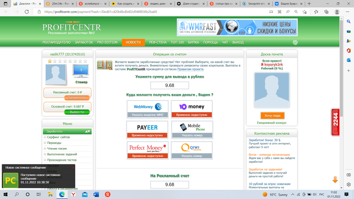 Заработок в Интернете на личном испытании