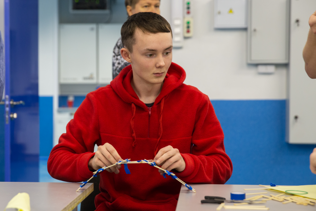 31 октября в коворкинге Политехнического института ВятГУ прошла проектная мастерская для учеников сетевого инженерного класса. Старшеклассники строили мосты, а затем ломали их, чтобы проверить, чья конструкция выдержит больший вес Вятский технический лицей является базовым учреждением по развитию инженерного образования среди школьников. В инженерном классе они осваивают углубленные предметы технической направленности: физики, информатики, проектной деятельности, что также помогает подготовиться к сдаче ЕГЭ. Раз в полгода во время каникул ученики приезжают в Киров на трехдневные «сессии», чтобы погрузиться в практические задачи с учителями Вятского технического лицея и познакомиться со средой Политехнического института ВятГУ. 31 октября старшеклассники из инженерного класса приехали в Политехнический институт ВятГУ, чтобы увидеть, как устроена жизнь университета изнутри, а главное – чем именно им предстоит заниматься, будучи студентами технических специальностей. После экскурсии по кам