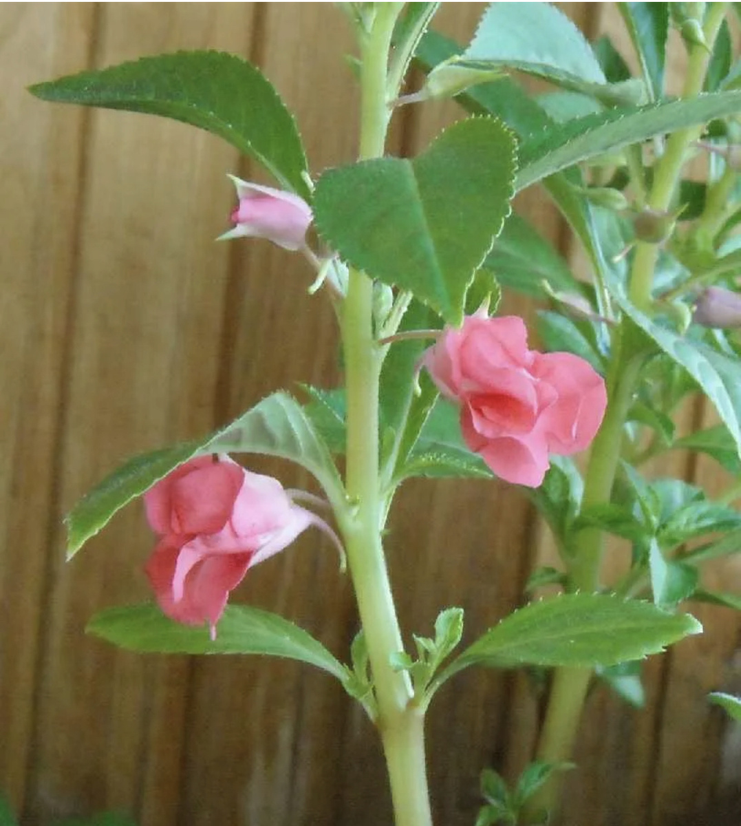 В народе у этого цветка немало различных названий, связанных с его видом или свойствами. Нередко бальзамин называют недотрогой — в период созревания его семян коробочки с ними резко растрескиваются как от прикосновения, так и от дуновения ветерка. Латинское название растения — Impatiens — при этом переводится как «чувствительный». Само название «бальзамин» связано с ароматностью тропических разновидностей растения. Оно происходит от арабского «бальзам». Из-за долгого цветения немцы прозвали цветок «усердной Лизой», некоторые называют его «вечноцветом», а яркая окраска цветочков растения подарила ему ещё одно название — «огонёк». Цветки бальзаминов распускаются, буквально озаряя комнату или сад своими красками. В домашней культуре кустик также известен как «Ванька мокрый». Бальзамин реагируют на высокую влажность выделением сахаристых капель на краях листьев после полива или в преддверии дождей.