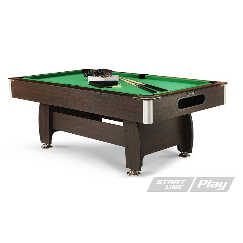 В комплектацию входит набор аксессуаров: для пула или русской пирамиды. Цветовое исполнение представлено двумя вариантами: серый с серебром и темное тиковое дерево.
