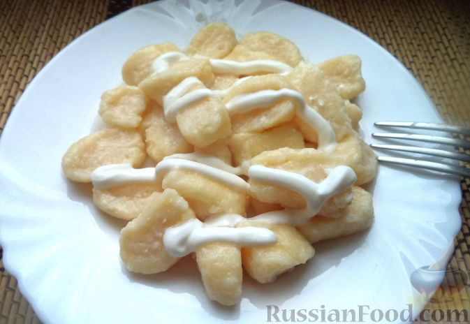 В миску поместить творог. Размять. Добавить к творогу яйцо. Добавить соль (0,3 ч. ложки) и сахар. Тщательно перемешать. Добавить муку. 2. Замесить творожное тесто. 3. Скатать колбаску. Нарезать творожное тесто небольшими кусочками. 4. Вода вскипела. Посолить воду (1 ч. ложка). В кипящую воду выложить ленивые вареники. Как только они всплывут, варить на среднем огне 2 минуты. 5. Шумовкой достать ленивые вареники, выложить на тарелку, смазать сливочным маслом. Подавать ленивые вареники со сметаной.