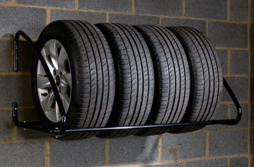 - Вариант укладыванием стопкой подходит для резины на дисках. Такая конструкция занимает немного места и позволяет исключить риск повреждения колес от контакта с другими предметами. Кроме того, можно подвесить их за диски на крючки.
