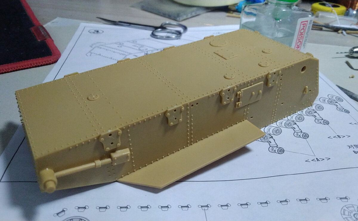 Доброго времени суток, на днях по вечерам начал собирать модель танка Т - 24 от фирмы Hobby Boss в 35 масштабе. Сборку модели начал с корпуса танка. Огрехи по матчасти у танка есть, но не столь существенные. В целом сборка не напряжённая, косяков в инструкции замечено не было. После корпуса сделал воздухозаборник для двигателя, ибо почему то китайцы упустили этот момент при проектировании в модели, но в 2дпроекции на схеме он присутствовал. И это закономерность китайцев из - за большой конкуренции, как говорится, кто быстрее выпустит набор, тот получит +100500 к социальному кредиту. Также сделал крепления задних направляющих схематически, у них почему то вообще не было этого механизма. Хотя по чертежам он есть. И переместил правый люк танка на свое место. Добавил фактуру металла на некоторые поверхности танка, чтобы не казался таким плоским. Вот такие переделки вышли у меня за вечер работы. Спасибо за прочтение!