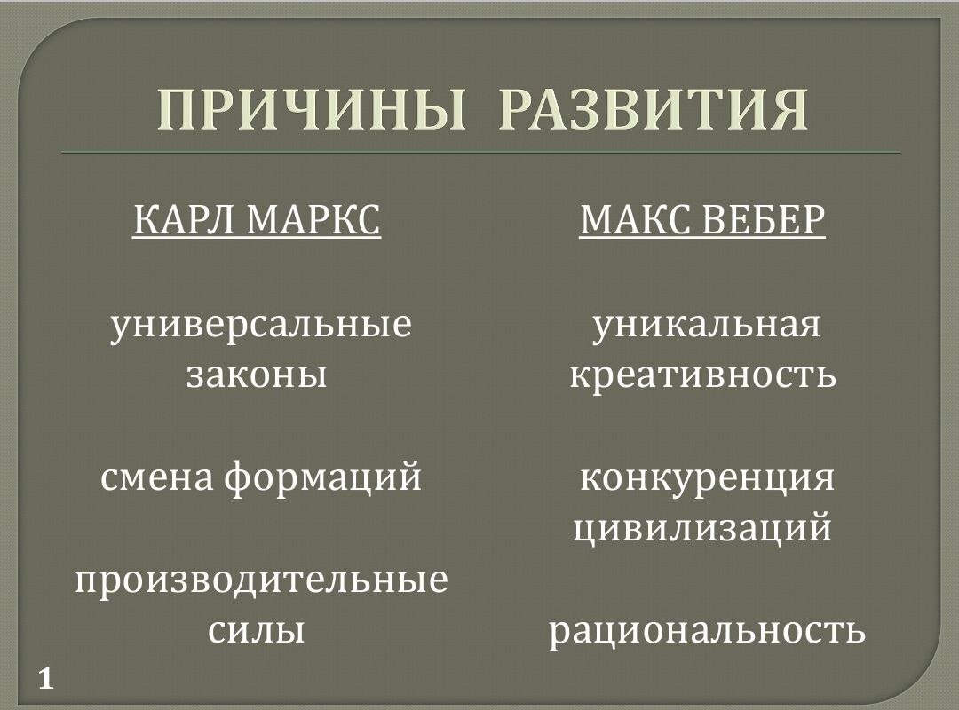 Начал проводить стримы про особенности российской цивилизации и ее отличиях от других - в первую очередь, западной. Опираюсь при этом на разработки Макса Вебера. Для того, чтобы лучше понять его концепцию возникновения капитализма, проще всего сопоставить ее с подходом Маркса. Для Маркса очевидно действие универсального мирового закона, выражающегося в смене экономических формаций. Наступление капитализма неизбежно повсюду, но в авангарде этого процесса идет Западная Европа и в первую очередь Англия. Вебер идею универсальных законов развития человечества полностью игнорирует. По его мнению, появление капитализма является не неизбежным этапом социально-экономического развития, а следствием уникального стечения факторов, ставшего возможным только на Западе и больше нигде. Данный тезис порождает много важных выводов, многие из которых делает уже не сам Вебер, а его последователи. Из факта уникальности Запада следует, что в других регионах мира капитализм может появиться не путем «внутре