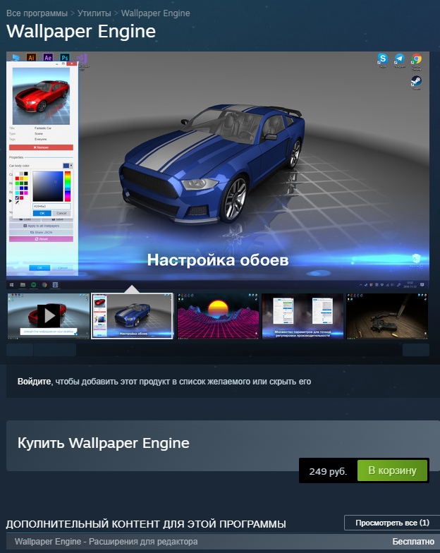 Программа платная, купить ее можно в Стиме. Но стоит она сущие копейки, около 250 рублей. Ради красоты, можно и потратиться (ну, я думаю вы все уже знаете, как пополнять кошелек в Стиме в 2022 году. Если нет — пишите в комментарии, и мы напишем об этом отдельную инструкцию).