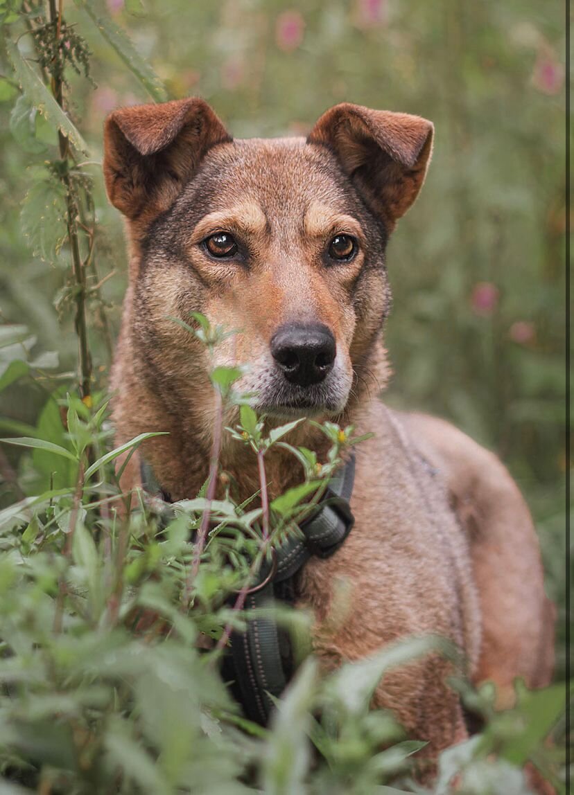 Пару лет проведя в приюте, в страхе и ужасе, прошла путь социализации у кинологов. Была домашней месяц, но ее предали и вернули.