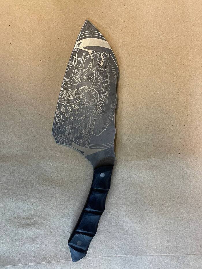 Написал клиент, говорит, что нужен набор на кухню жене. А супруга - большой фанат фильма «чужой», нужно это как-то обыграть. И важное уточнение ещё: ножи обязательно сделать такие, чтобы было не так легко испортить (любит в раковине оставлять).