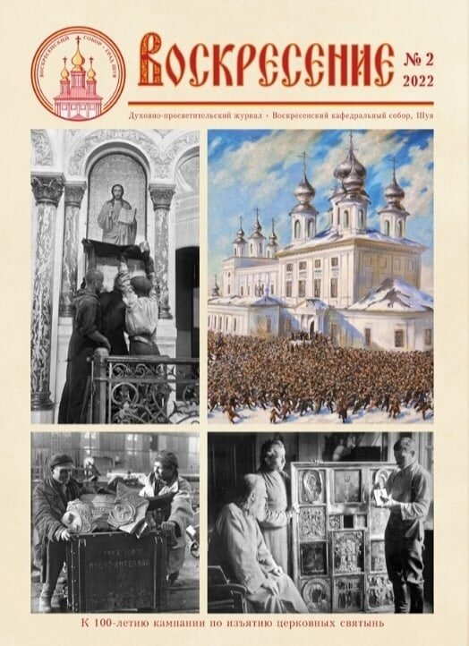 Телеграм-канал Шуйской епархии сообщает: «Вышел новый номер духовно-просветительского журнала «Воскресение» № 2 за 2022 год. Номер посвящен 100-летию событий, связанных с проведением кампании по изъятию церковных ценностей. Антицерковная кампания 1922 г. стала важной вехой в истории отношений Церкви и советского государства: Церковь была уже не только законодательно отделена от государства, но была объявлена классовым врагом, и ее представители подверглись преследованиям. Рубежным этапом в ходе кампании по изъятию церковных ценностей стало крупное антиправительственное выступление в Шуе, закончившееся кровопролитием у стен Воскресенского собора 15 марта 1922 г. Номер журнала можно приобрести в церковной лавке Воскресенского собора или на епархиальном складе Шуйской епархии». По материалам телеграм-канала Шуйской епархии