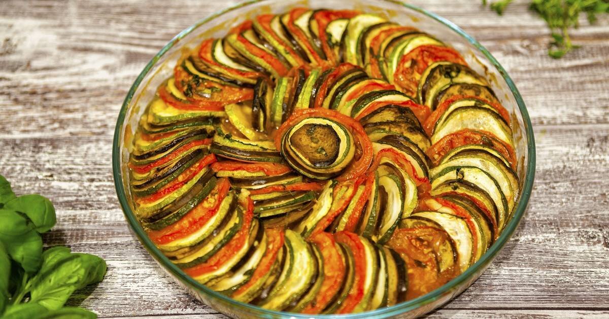 Убрать розмарин, тимьян и базилик. Рататуй готов.