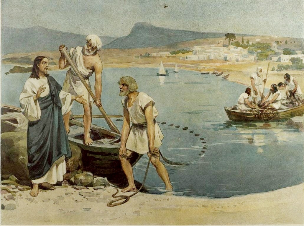 “Услышав от него эти слова, оба ученика пошли за Иисусом. Иисус же, обернувшись и увидев идущих, говорит им: «Что вам надобно?» Они сказали ему: «Равви (что значит “Учитель”), где живёшь?» Говорит им: «Пойдите и увидите». Они пошли и увидели, где Он живёт, и пробыли у Него день тот. Было около десятого часа. Один из двух, слышавших от Иоанна об Иисусе и последовавших за Ним, был Андрей, брат Симона Петра. Он первый находит брата своего и говорит ему: «Мы нашли Мессию», что означает «Христос». Он привёл его к Иисусу. Иисус же, взглянув на него, сказал: «Ты — Симон, сын Ионы; ты наречёшься Кифа», что означает «камень» (Пётр)” (Ин. 1:37–42).