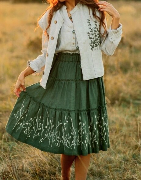 Ребята создают авторскую одежду с элементами вышивки. Это не деловые наряды, с нотками пары стежков на кармашке. В коллекции "Сундучка" в основном наряды из натуральных льняных тканей с изящной вышивкой.