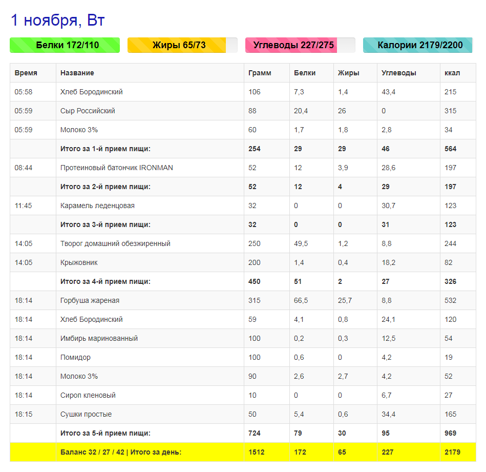 Привет! Меня зовут Оксана, мне 39 лет и я худею к НГ на 5 кг с веса 65 кг при росте 175 см. Напомню, что я страдаю "зажорами" (не знаю является ли это РПП, пока не вникала), поэтому первая моя цель - оставшиеся два месяца обойтись без них, СОВСЕМ (чего никогда в моей жизни не было). Поэтому калорийность своего рациона я буду делать в районе 2200 ккал в день, чтобы не голодно было (но и на такой калорийности я могу ноги протянуть от голода, уж поверьте). Вчера был крайне тяжелый на работе день. Еле дождалась окончания рабочего дня, чтобы убежать с нее))). Стресс на мое питание никак не повлиял, за ужином я строго следила, чтобы количество калорий не перевалило нужную отметку. Я вообще заметила, что аппетит у меня растет не от стресса, а от скуки. Ну не могу я сама себя развлекать)). Впервые, уже за чаем, ПРЕЖДЕ, ЧЕМ СКУШАТЬ (обычно я считаю уже по факту, может в этом тоже есть ошибка), я посчитала калорийность и отложила половину сушек из-за того, что они не дали бы мне соблюсти дневной